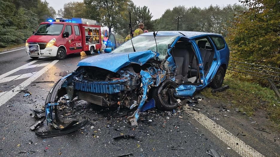 5 osób w szpitalu. Czołowe zderzenie w Woli Łąckiej. Droga zablokowana.