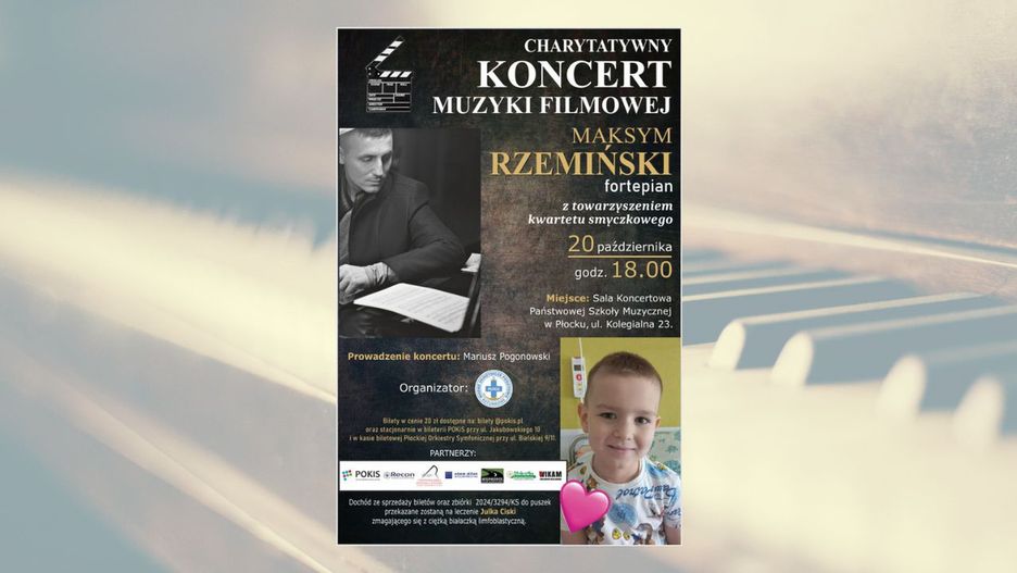 Rejonowe Płockie WOPR wraz z Partnerami zapraszają Państwa na wyjątkowy Charytatywny Koncert Muzyki Filmowej, który odbędzie się 20 października o godzinie 18:00 w Sali Koncertowej Państwowej Szkoły Muzycznej w Płocku (ul. Kolegialna 23).