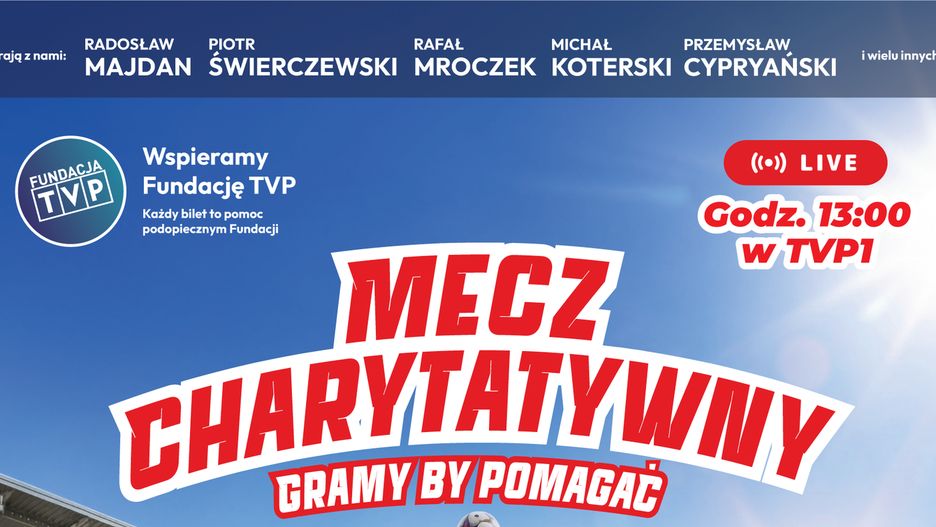 W niedzielę, 19 kwietnia 2026 roku, Stadion im. Kazimierza Górskiego w Płocku stanie się areną wyjątkowego wydarzenia sportowego. O godzinie 13:00 rozpocznie się mecz charytatywny pod hasłem "Gramy, by pomagać", w którym zmierzą się Drużyna TVP oraz Reprezentacja Artystów Polskich.