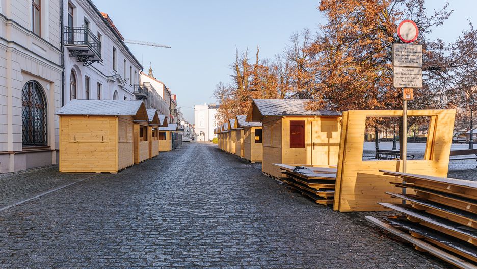 Na starym mieście już trwa montaż świątecznego oświetlenie. Pojawiły się pierwsze jarmarkowe kramy Wkrótce rozpocznie się przygotowanie lodowiska.