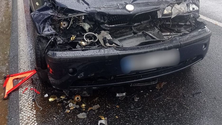 - 23-letni kierujący pojazdem BMW nie dostosował prędkości do panujących warunków atmosferycznych i uderzył w naczepę pojazdu ciężarowego MANN. W wyniku poniesionych obrażeń 21-letnia pasażerka BMW została przewieziona do szpitala. Kierujący BMW został ukarany mandatem karnym.