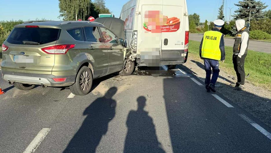 69-letni kierujący pojazdem marki Ford nie zachował bezpieczniej odległości od pojazdu poprzedzającego marki Iveco i uderzył w tył tego pojazdu.