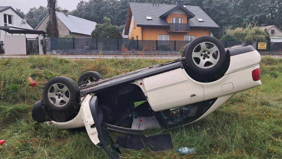 Około godz. 13 na na drodze krajowej nr 62 w Popłacinie doszło do zdarzenia drogowego. 51-letnia kierująca audi na łuku drogi straciła panowanie nad pojazdem, zjechała z drogi i dachowała. Na szczęście nikt nie doznał obrażeń.