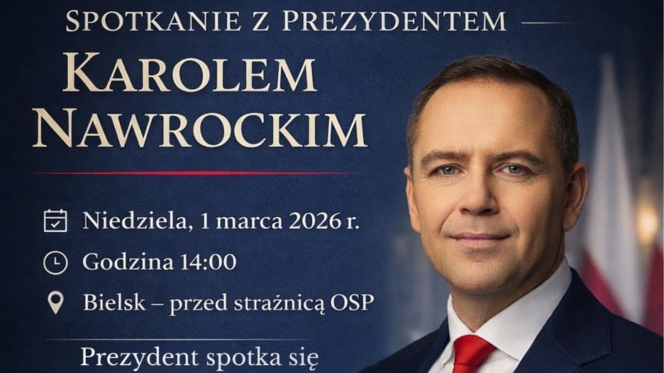 W niedzielę, 1 marca 2026 roku, w Bielsku odbędzie się spotkanie z Karolem Nawrockim. Wydarzenie zaplanowano na godzinę 14.00 przed strażnicą OSP. Organizatorzy proszą uczestników o wcześniejsze przybycie w związku z kontrolą bezpieczeństwa.