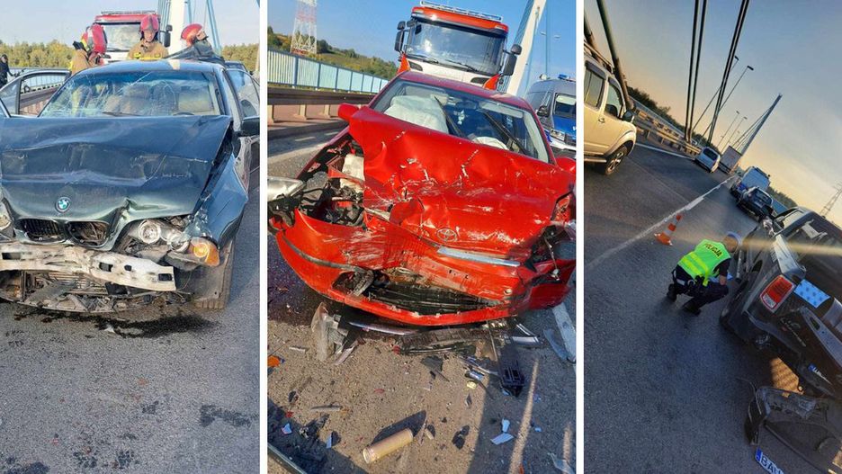 Zderzenie trzech pojazdów na Moście Solidarności
